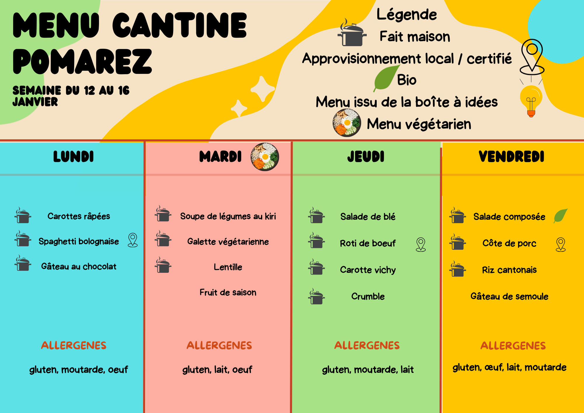 MENU CANTINE DU 12 AU 16 JANVIER 2026