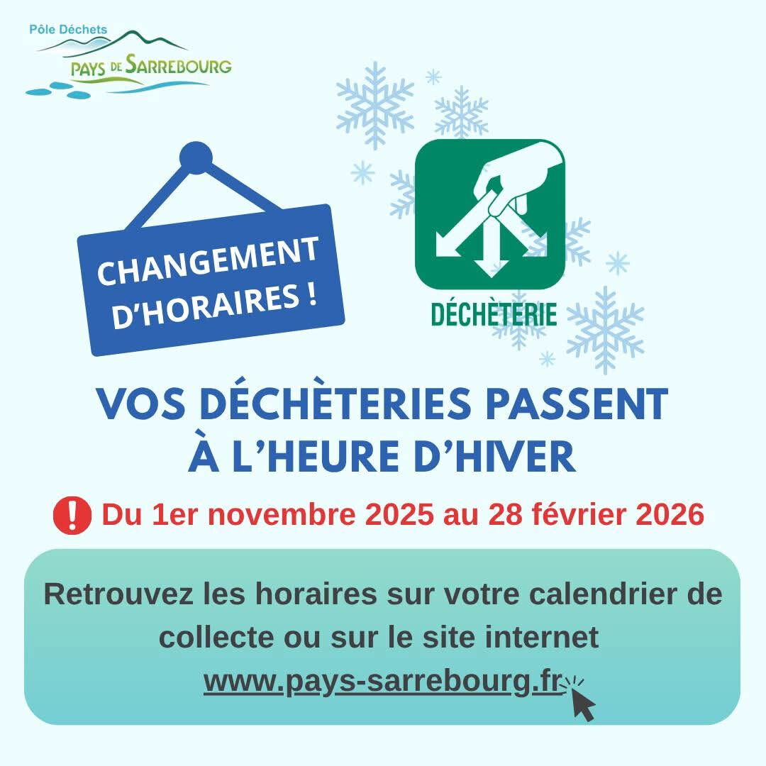 ♻ Les déchèteries passent à l'heure d'Hiver ! ⏰❄☃