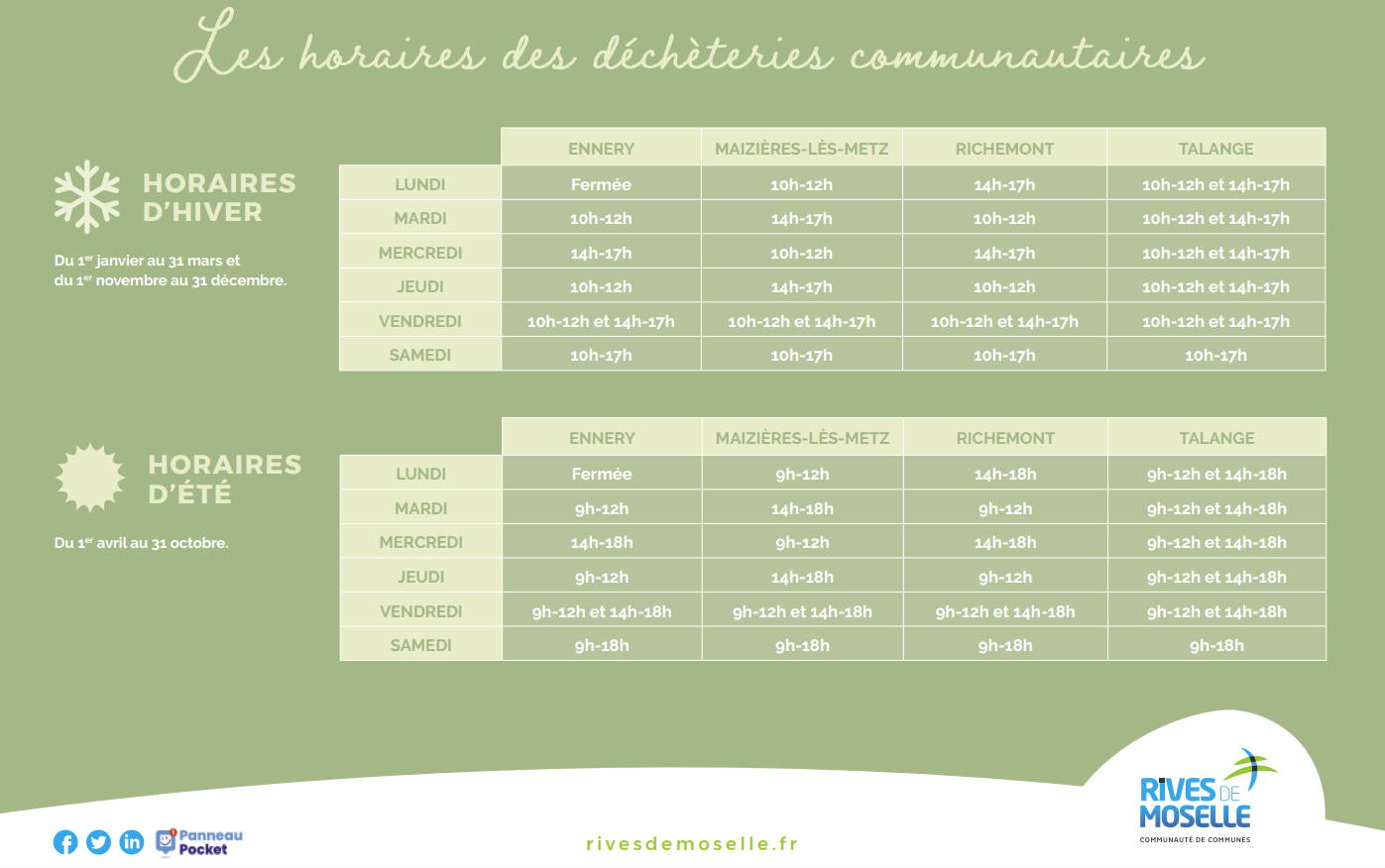 Nos 4 déchèteries sont accessibles du lundi au samedi inclus.