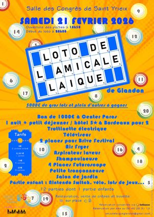 Loto de l'Amicale Laïque de Glandon le 21/02/2026