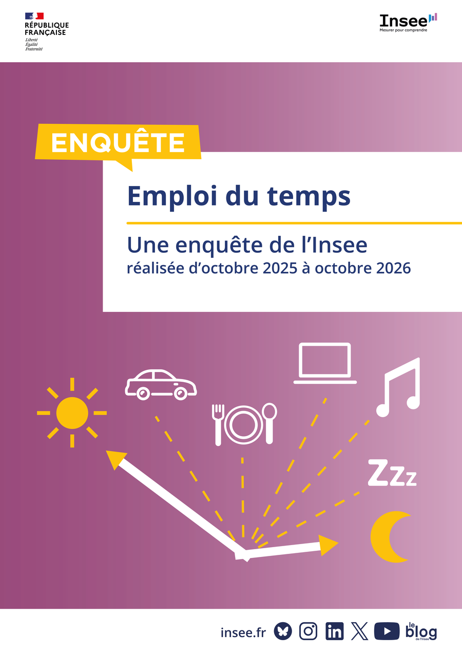 L'INSEE réalise une enquête statistique afin de connaître les activités de la vie quotidienne des personnes et le temps qu'elles y consacrent en 2025 et 2026 (jusqu'en octobre 2026).