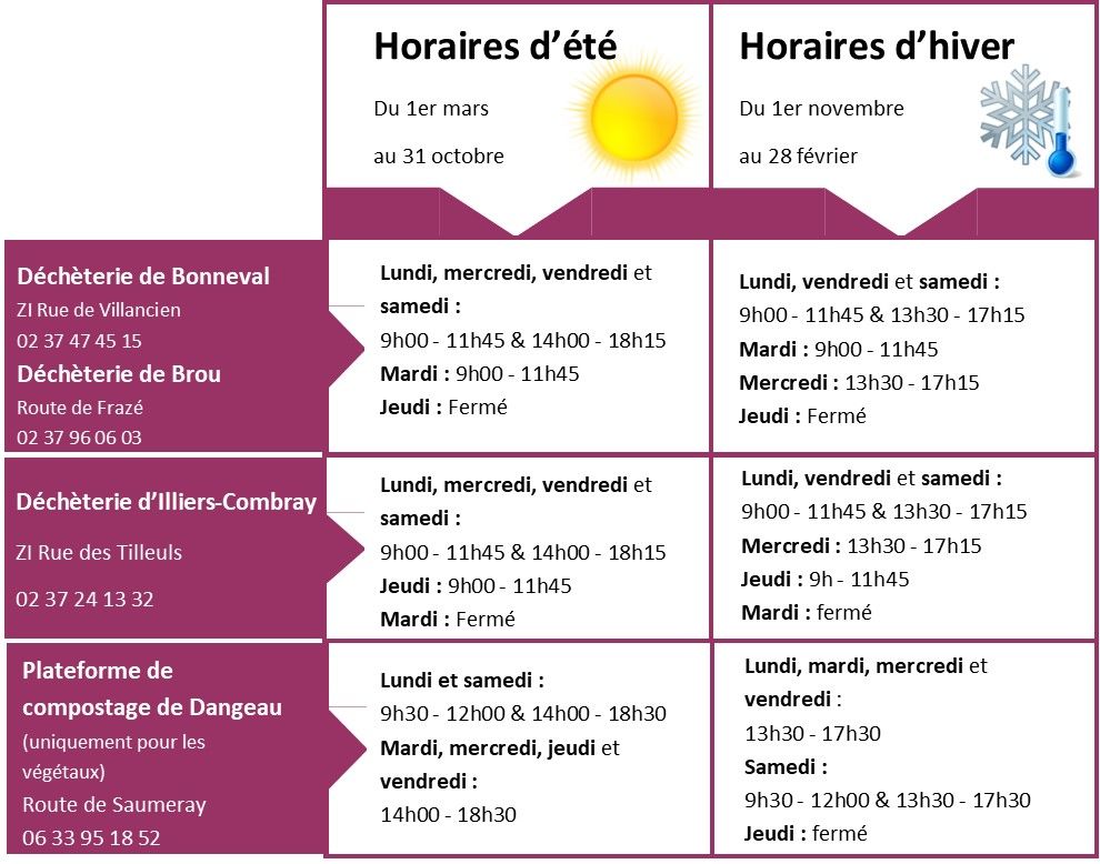 Horaires déchetterie Brou