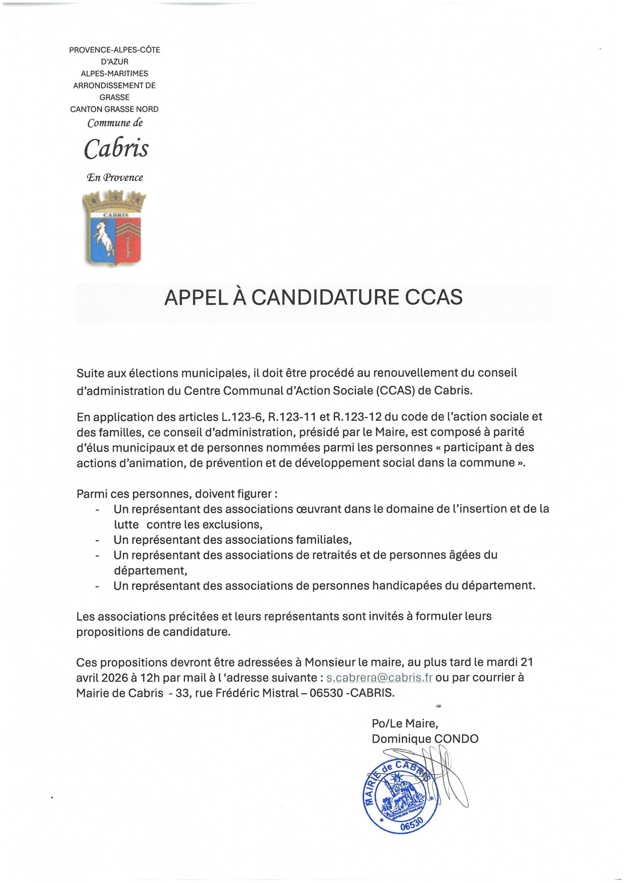 CANDIDATURE CCAS
