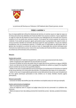 recrute un(e) cuisinier(ère)