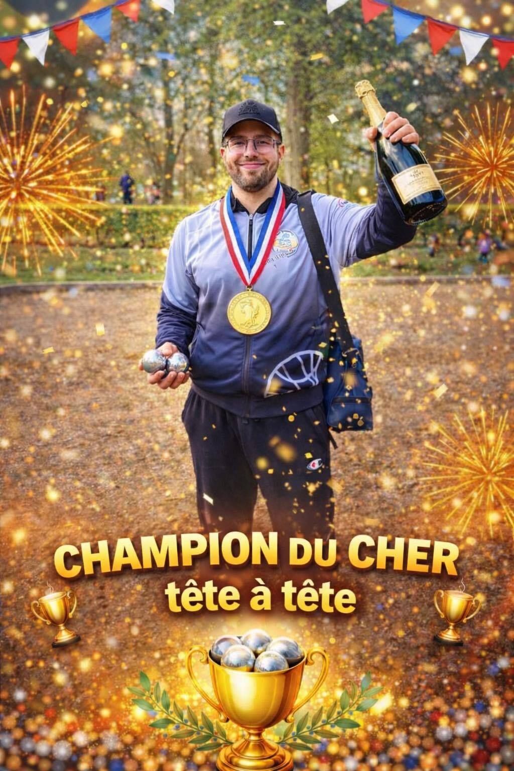 Alexis Delobre, licencié à l'association de pétanque "Les boulistes Marémortains" est champion du Cher tête à tête.