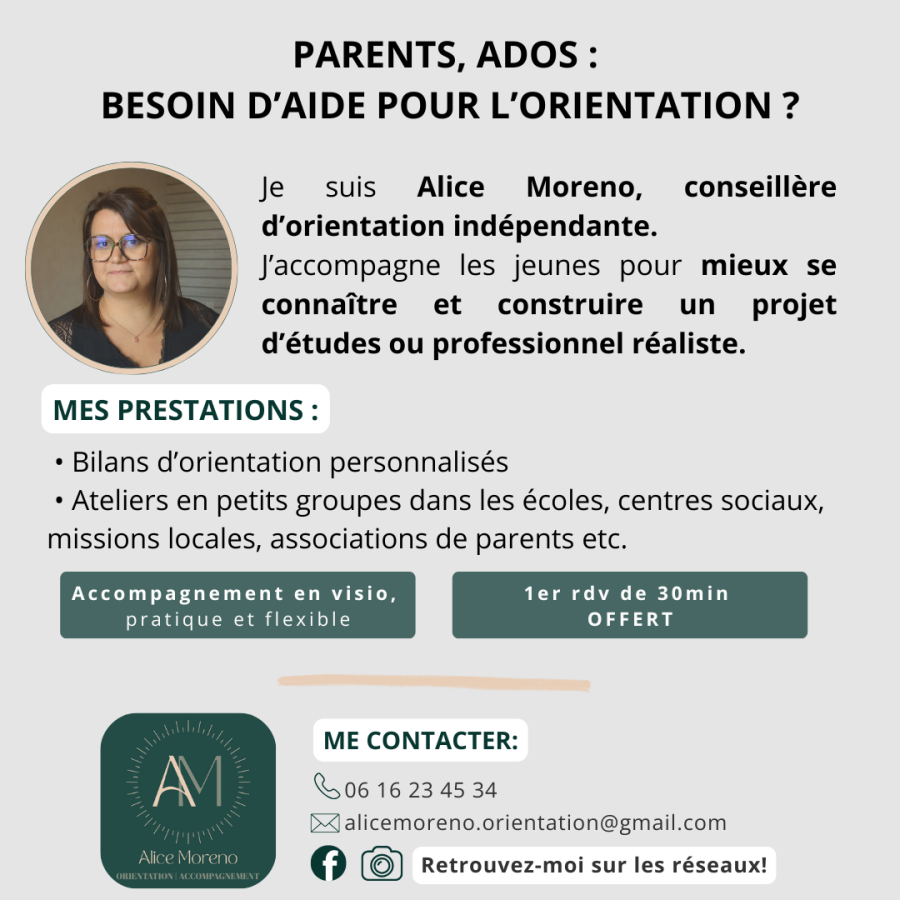 Cet atelier a pour objectif d’outiller les parents afin de mieux accompagner leur enfant dans ses choix d’orientation, sans pression, en comprenant les étapes clés et les ressources disponibles.