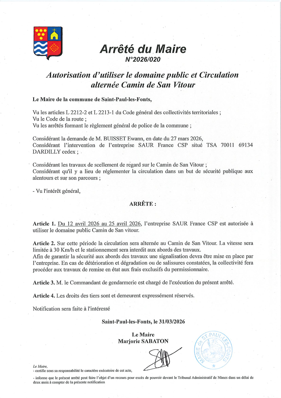 Du 12 au 26 avril, l'entreprise SAUR interviendra au Camin de San Vitour.