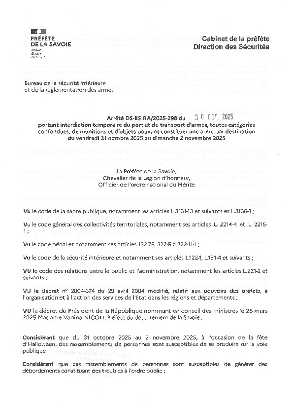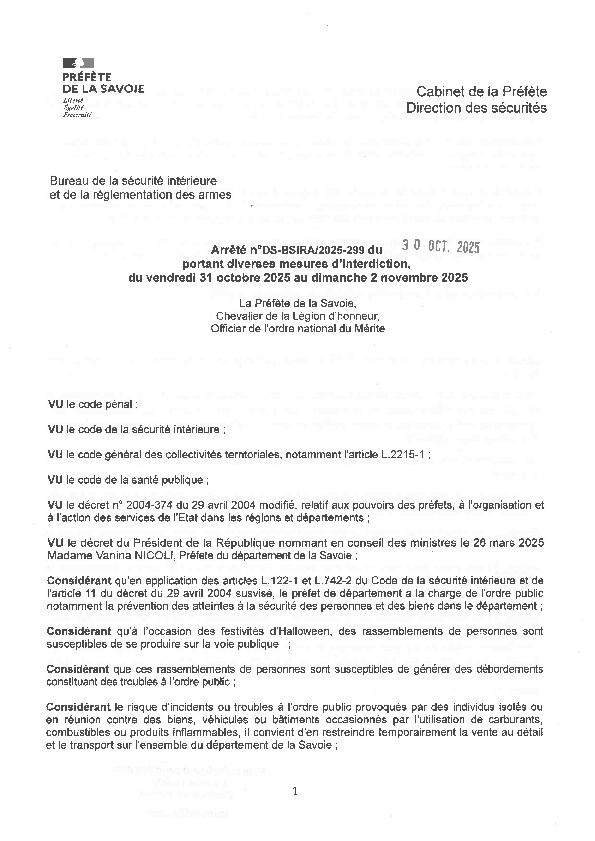 Dans le cadre de la fête d'Halloween, le Préfet à pris des mesures spécifiques entre le 31/10 et le 02/11 :