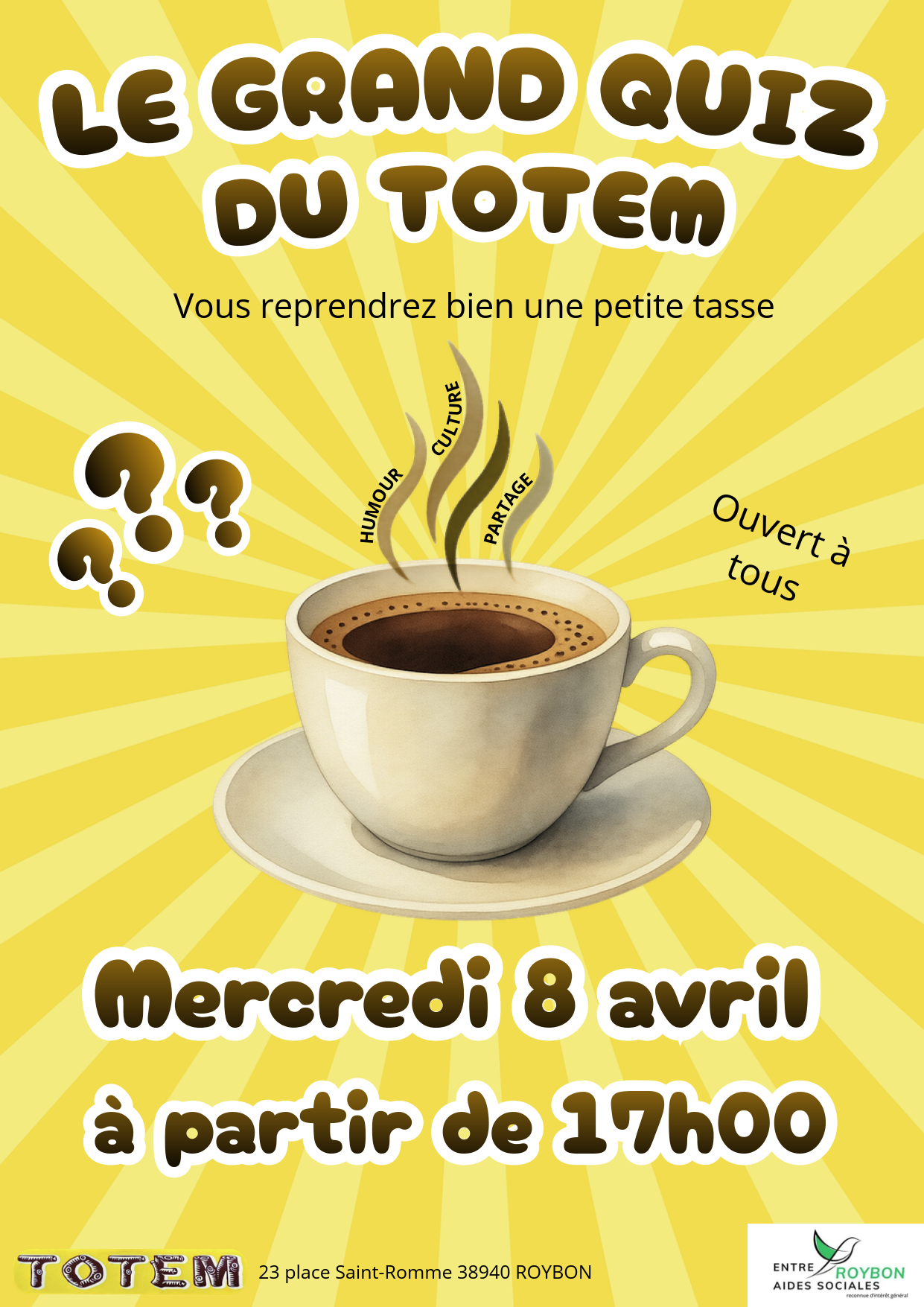 Grand Quiz au Totem mercredi 8/04 à partir de 17h