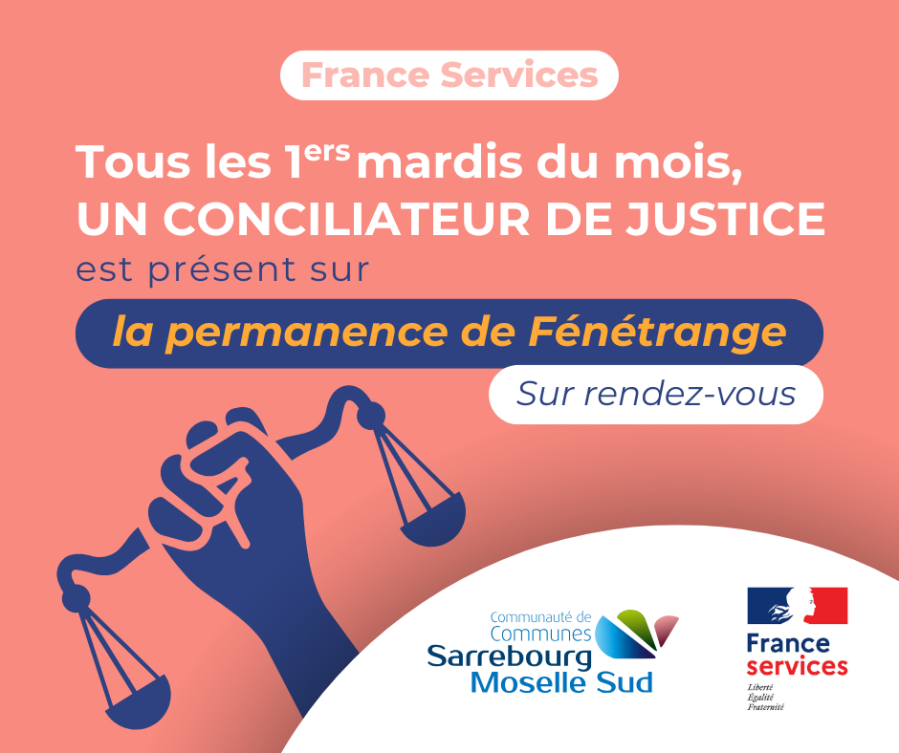 Prenez rendez-vous avec notre conciliateur de justice, présent tous les 1ers mardis du mois sur la permanence France Services de Fénétrange :