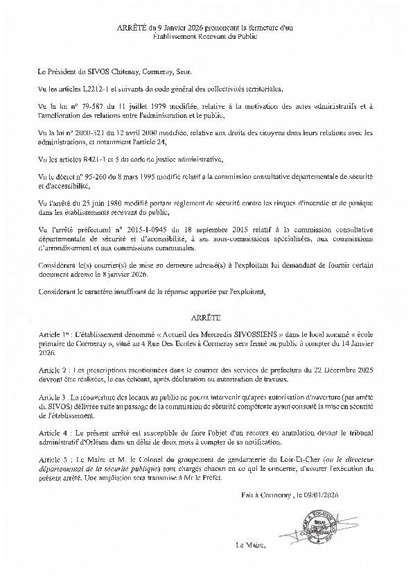 FERMETURE DES MERCREDIS SIVOSIENS
