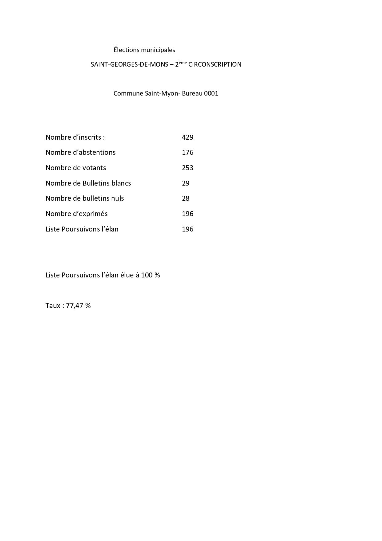 Résultat Élections municipales de Saint-Myon
