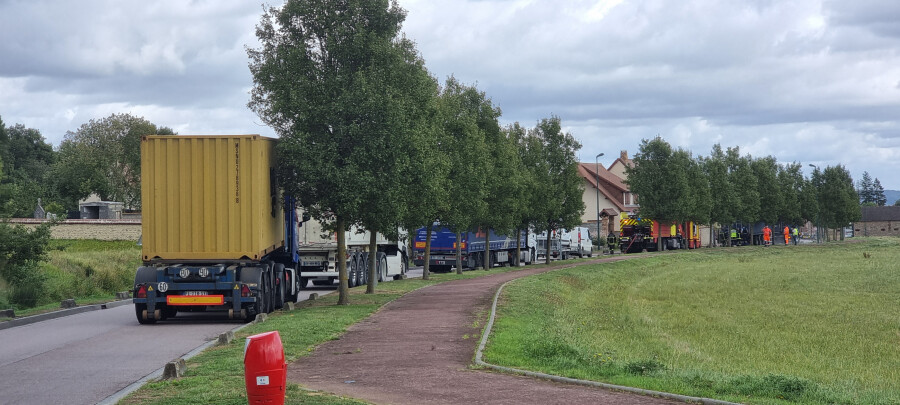 La RD135 est fermée au niveau de Venables, un camion est en panne devant le cimetière.