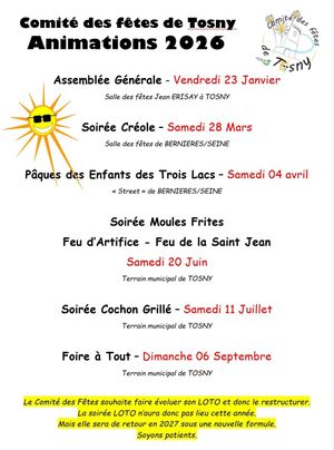 Cette année encore, les bénévoles du Comité des fêtes de Tosny vont vous faire passer de bons moments ! Retrouvez le programme des animations 2026 !
