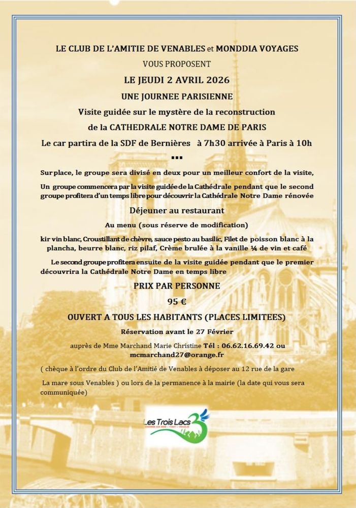 auprès de Mme Marchand Marie Christine Tél : 06.62.16.69.42 ou mcmarchand27@orange.fr
