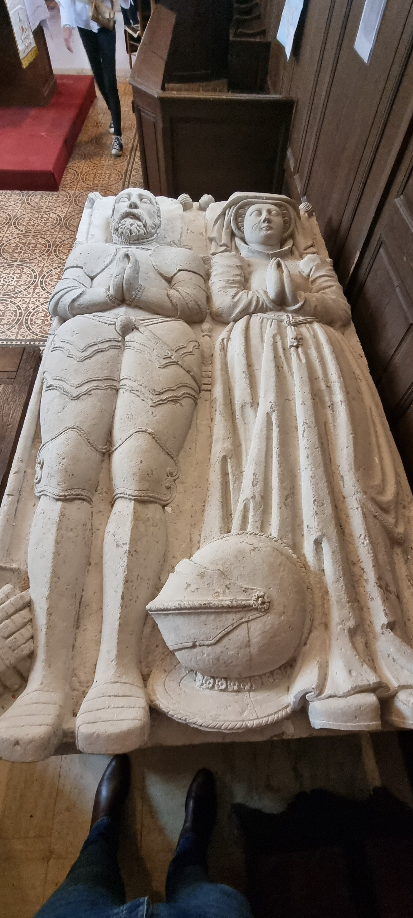 • Découverte du monument funéraire présentant les gisants de Richard de Coëtlogon, seigneur de Tosny, et de Marguerite de Pillavoine, sa femme.