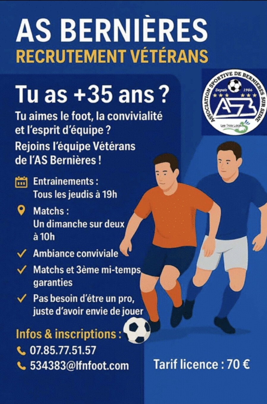 L’AS Bernières recrute des joueurs vétérans (+35 ans) !