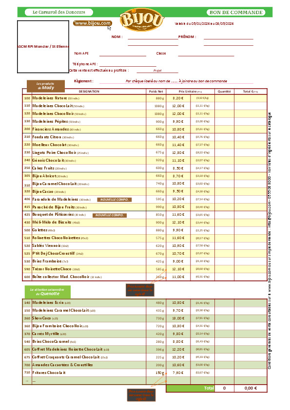 Vous trouverez ci-dessous le catalogue et le bon de commande