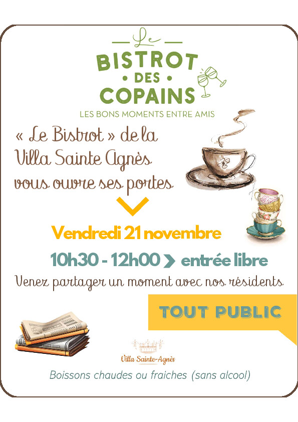 L’occasion de permettre à chacun de partager un moment convivial avec nos résidents, autour d’une boisson chaude ou fraîche (sans alcool).