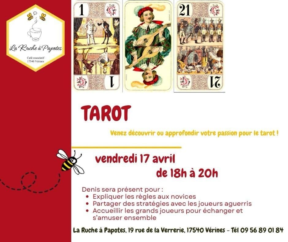 au café associatif La Ruche à Papotes, que vous soyez joueur averti ou désireux de decouvrir le Tarot ! 🐝🐝🐝