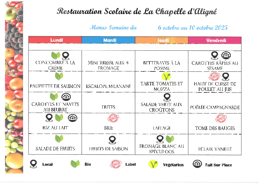 Menus restaurant scolaire