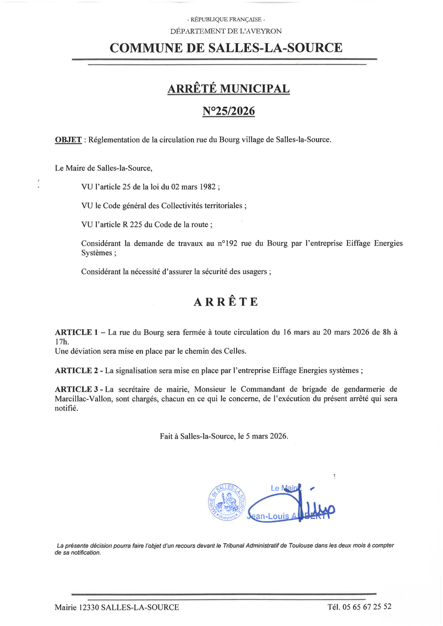 Arrêté de circulation n°25: Rue du bourg
