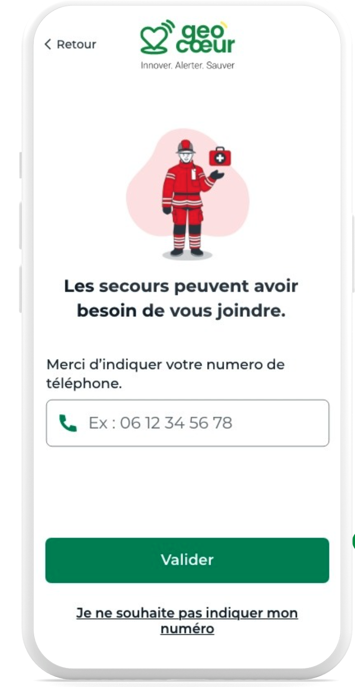 Une deuxième page s’affiche permettant de renseigner son numéro de téléphone portable.