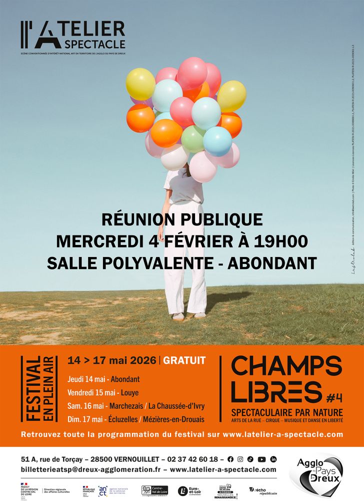 pour la présentation de l'organisation de la manifestation champs libres qui aura lieu du 14 au 17 mai à Abondant, Louye, Marchezais, La Chaussée-d'Ivry, Écluzelles et Mézières-en-Drouais.