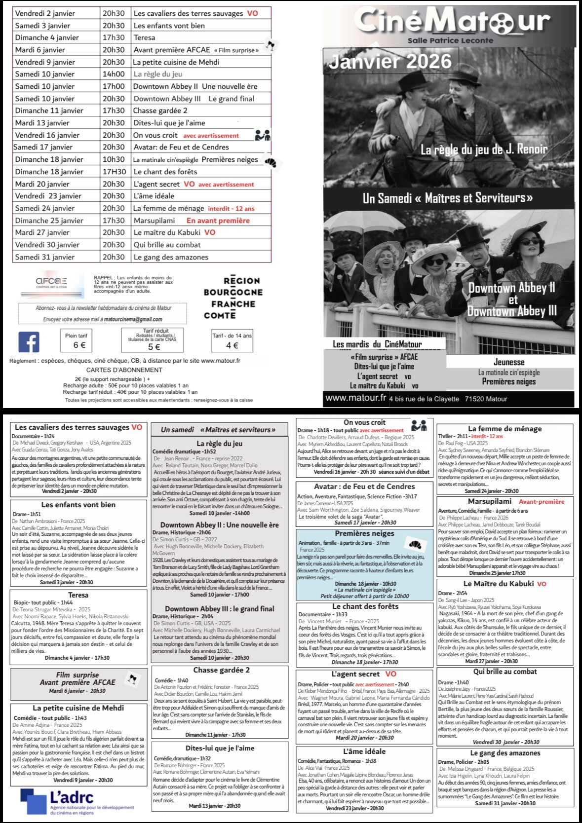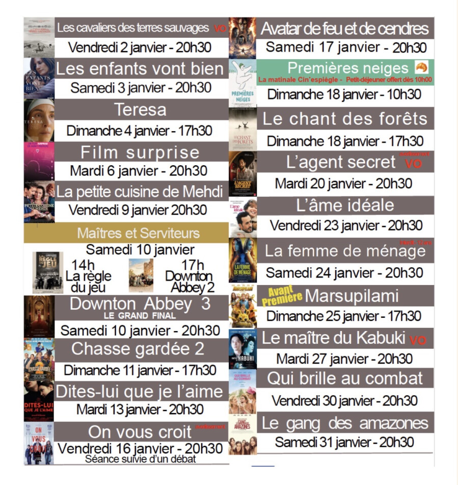 Programme cinéma 🎦 Janvier