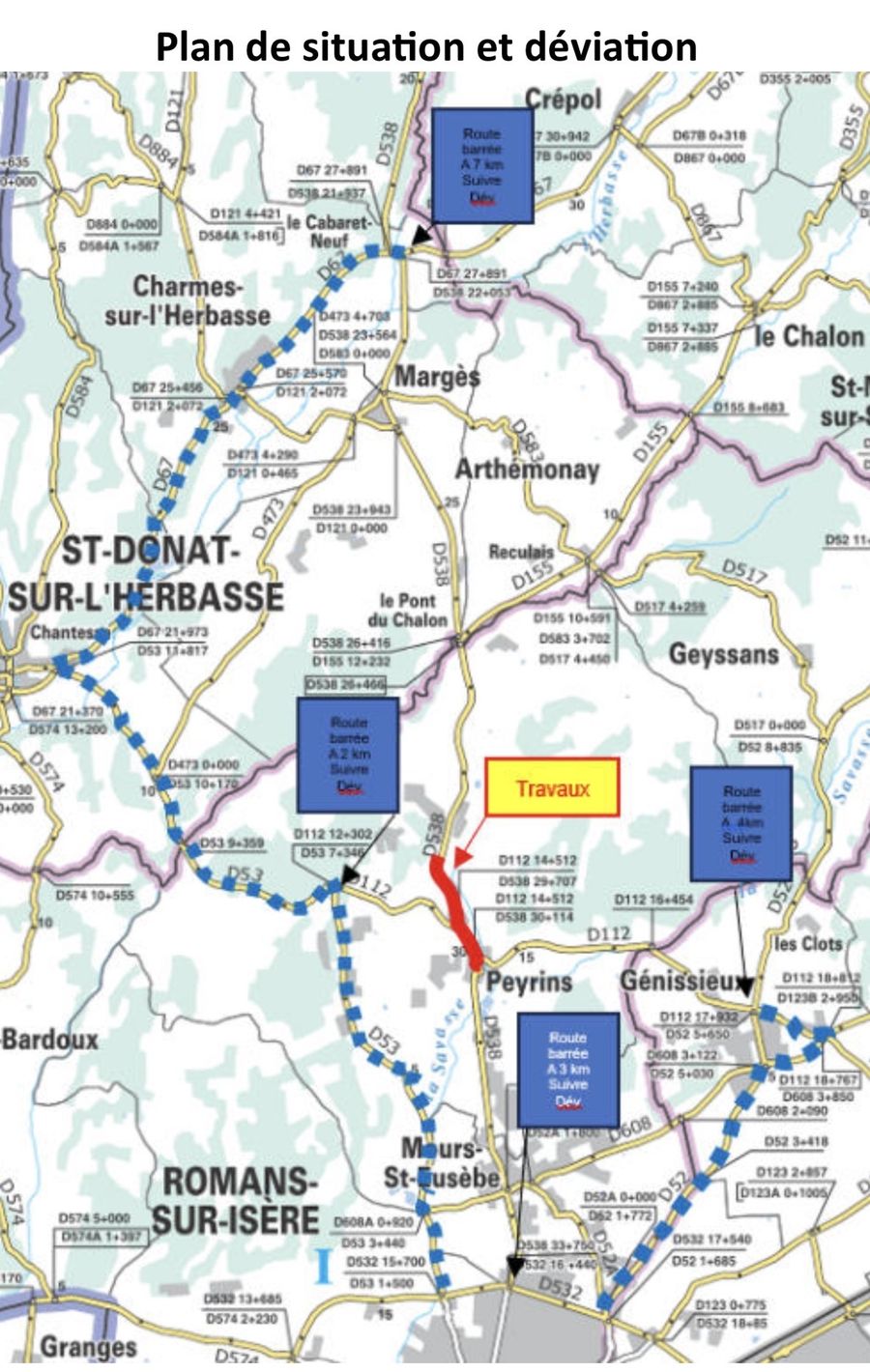 Fermeture totale de la RD 538 sur la commune de Peyrins