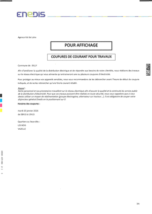 COUPURES DE COURANT POUR TRAVAUX