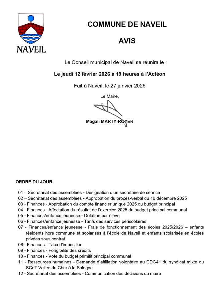 Le Conseil Municipal se réunira