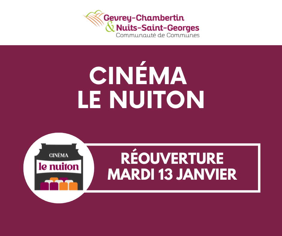 La panne de chauffage étant résolue, nous vous confirmons la réouverture du Cinéma Le Nuiton à compter du mardi 13 janvier.