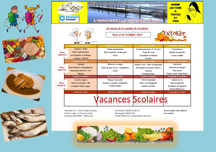 MENUS CANTINE SCOLAIRE OCTOBRE 2025