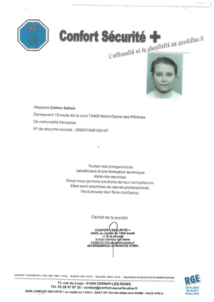 - un certificat avec photo de l'intervenante