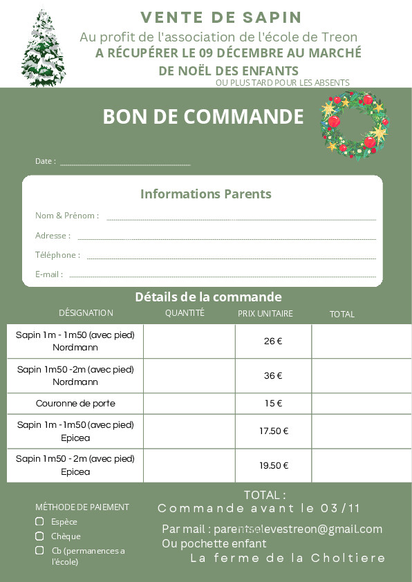 Une participation financière sera reversée à la coopérative scolaire à chaque sapin et chaque couronne vendus.