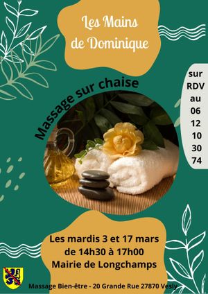 Dominique vous propose ses massages sur chaise à Longchamps.