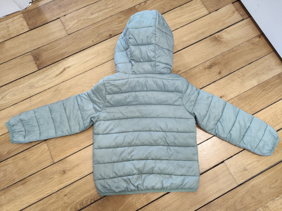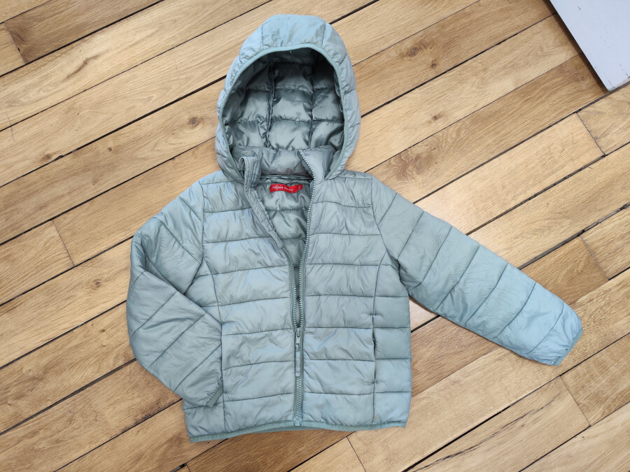 Ce manteau doudoune vert kaki, marque Tissaia, taille 6 ans a été trouvé au parc de jeux près des écoles.