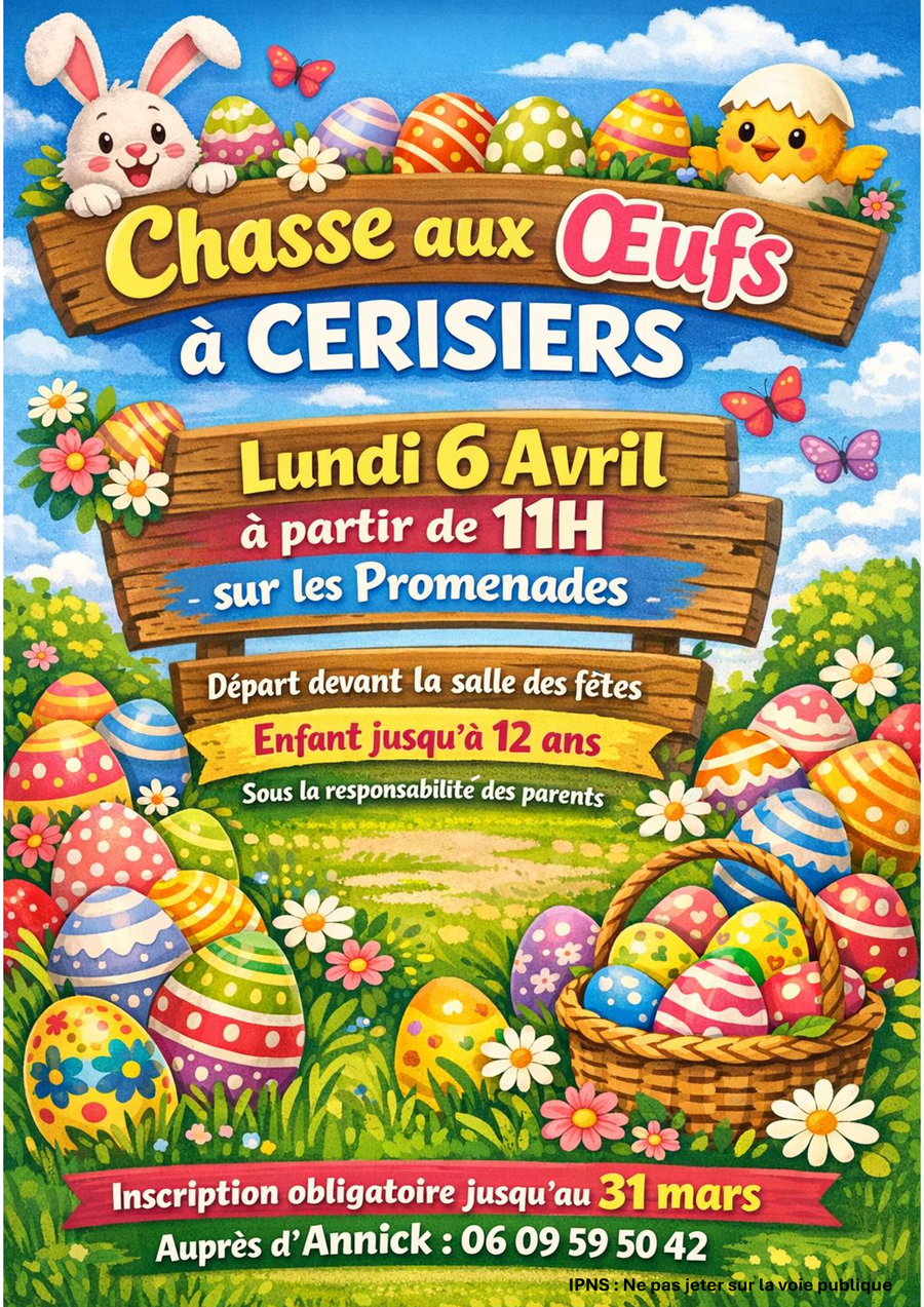 Chasse aux œufs à Cerisiers - Le Comité des Fêtes