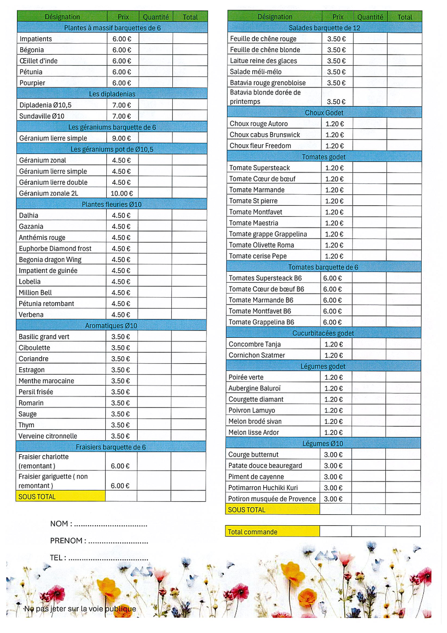 Les restaurants scolaires vous proposent de commander tout ce dont vous avez besoin pour votre jardin.