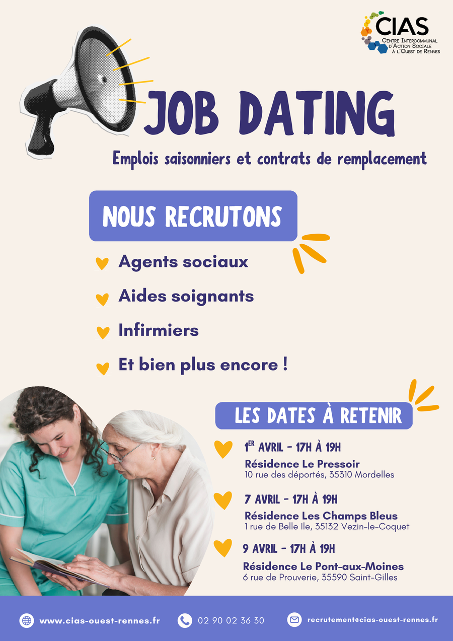 Venez nous rencontrer directement sur place ! Pour plus d'informations, vous pouvez consulter notre site www.cias-ouest-rennes.fr ou nous contacter au 02 90 02 36 30.