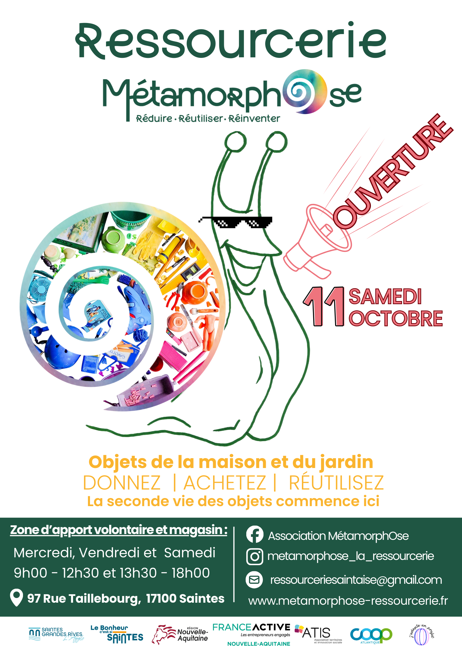 đą Ouverture de la Ressourcerie MĂ©tamorphose le 11 octobre 2025 au Silo Ă Saintes !