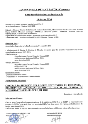 LISTE DES DELIBERATIONS SEANCE 19 FEVRIER 2026