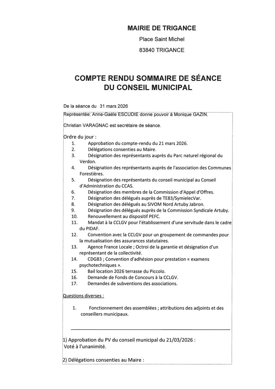 Compte rendu du conseil municipal du 31 mars