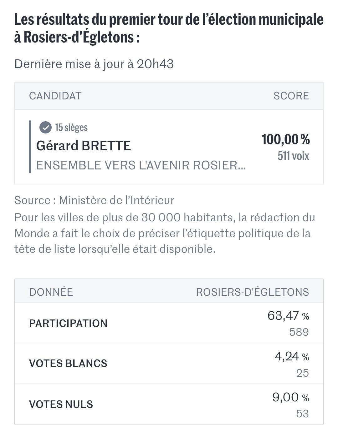 Résultats 1er tour élection municipale