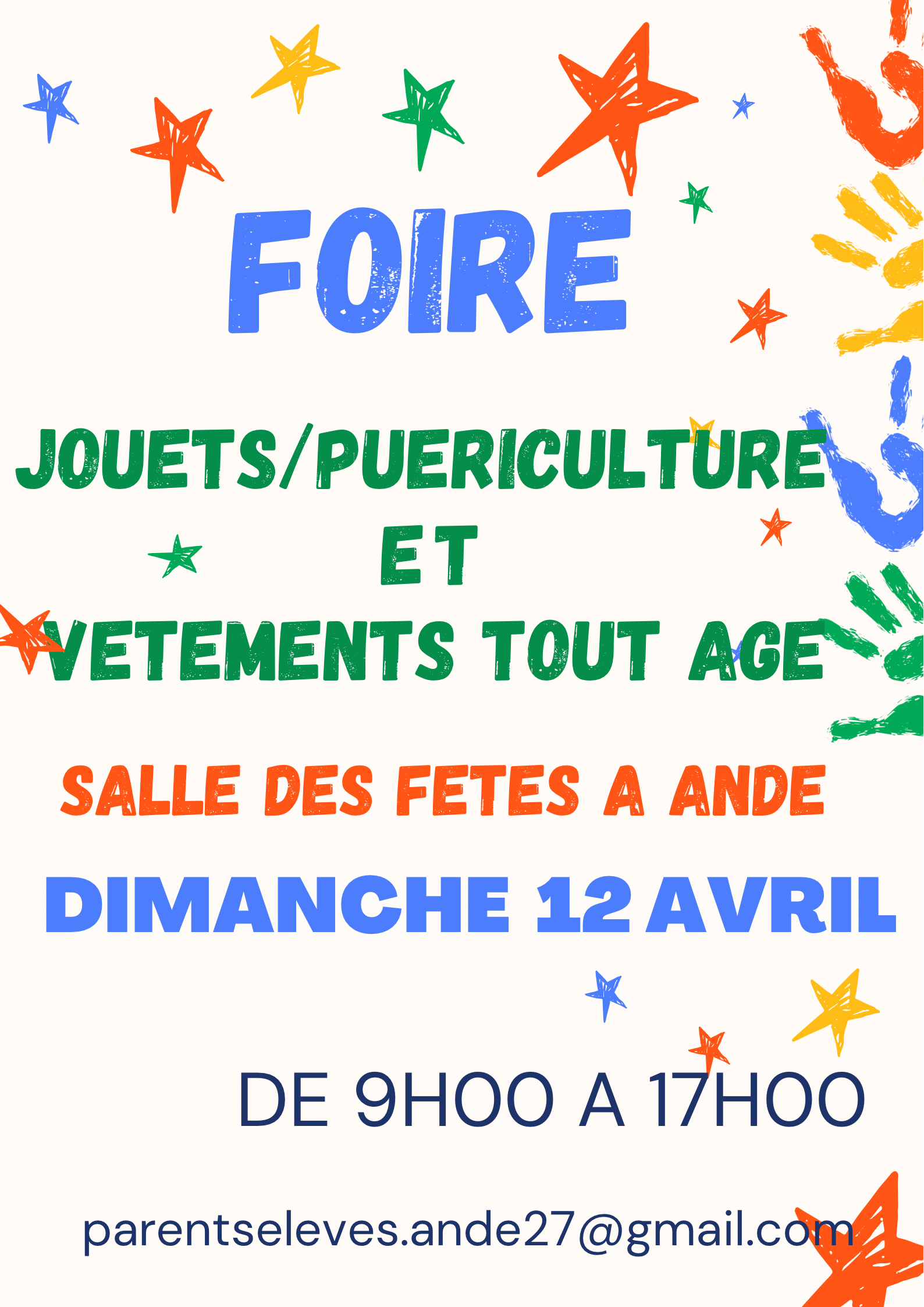 🎉 La foire aux jouets, à la puériculture et aux vêtements revient dans notre commune ! Profitez-en pour faire de bonnes affaires, donner une seconde vie à vos objets et rencontrer d’autres familles. Que vous cherchiez des jouets, des vêtements pour enfants ou des articles de puériculture, c’est le rendez-vous à ne pas manquer: