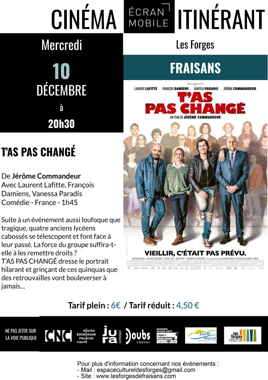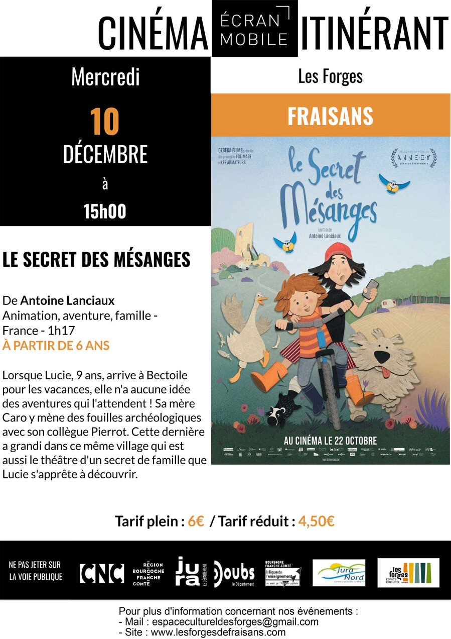 2 séances de cinéma vous sont proposées aux Forges à Fraisans