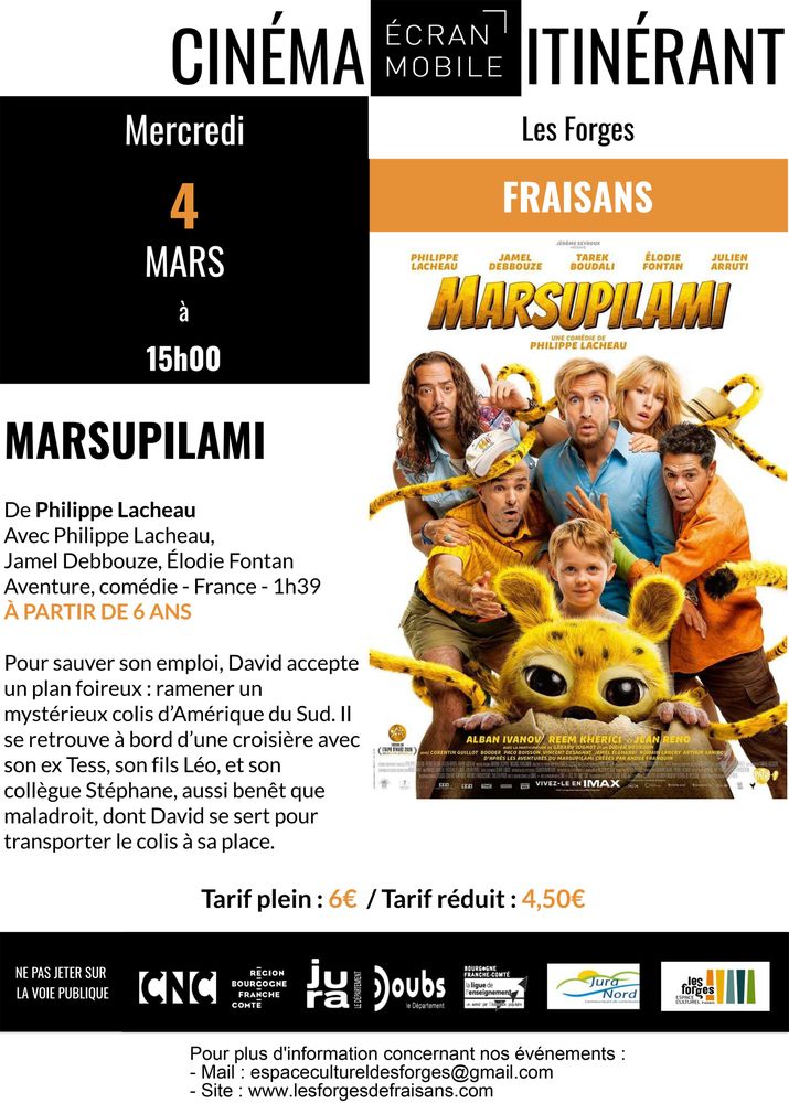 2 séances de cinéma vous sont proposées aux Forges à Fraisans