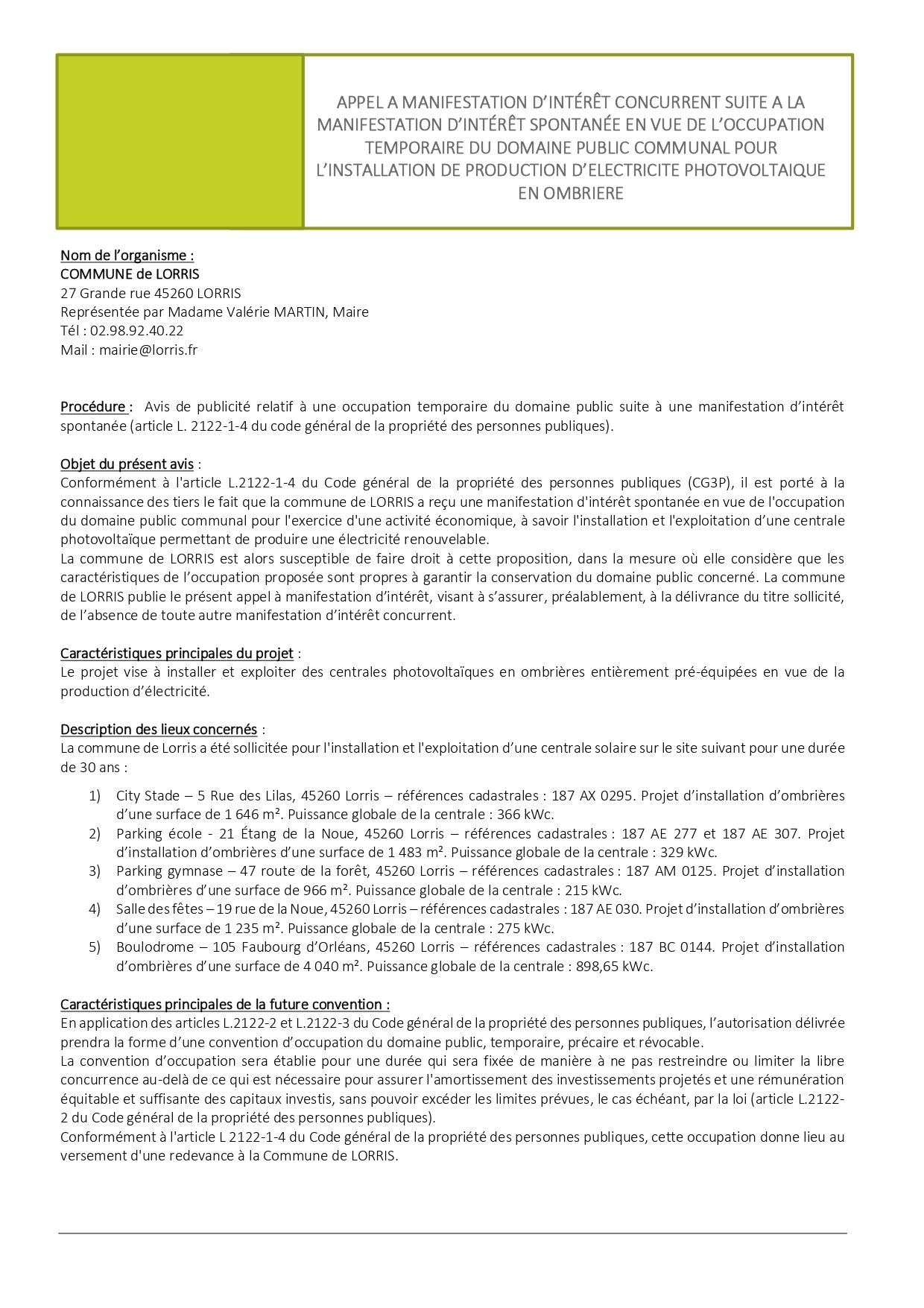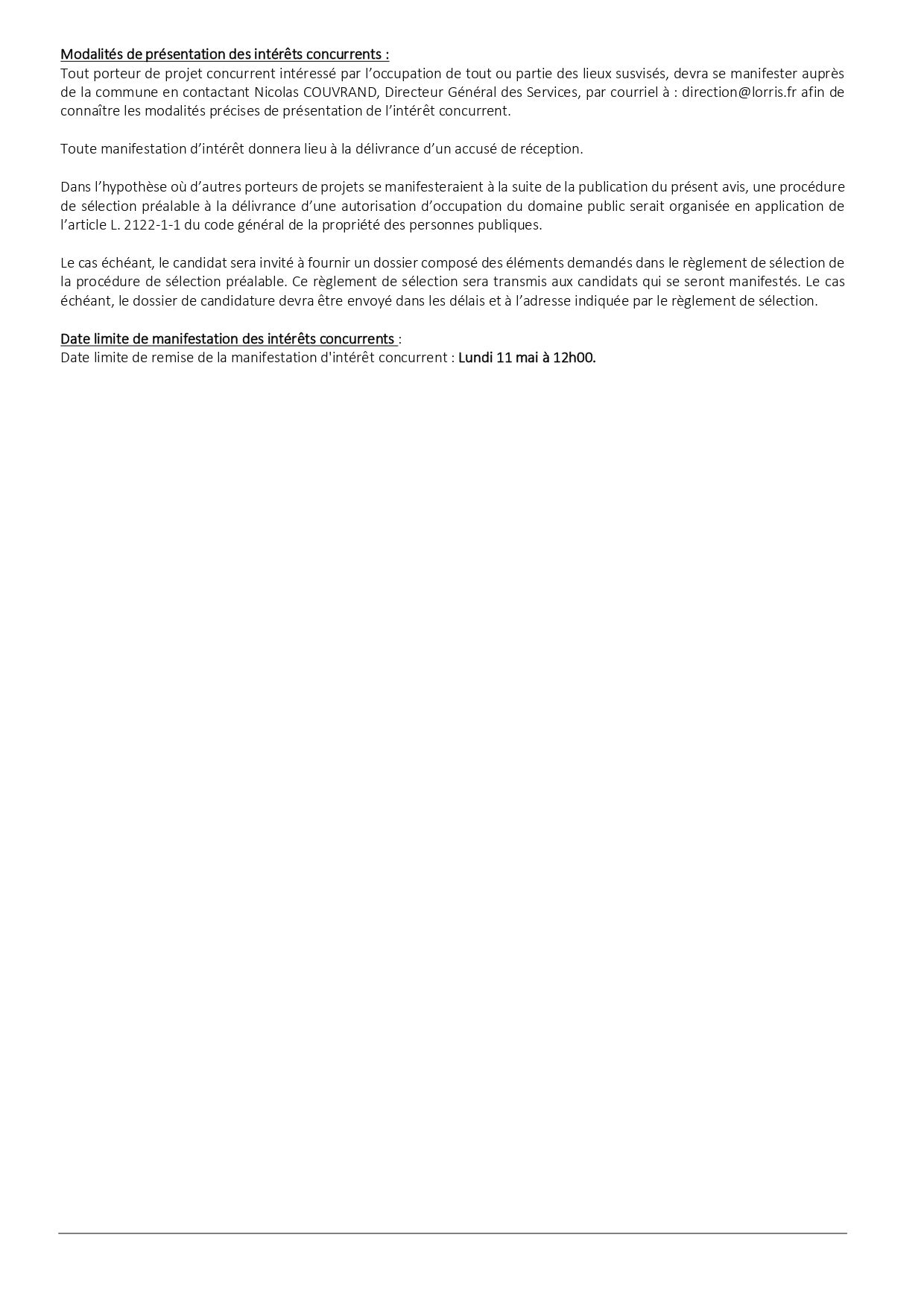 MANIFESTATION D’INTÉRÊT SPONTANÉE EN VUE DE L’OCCUPATION