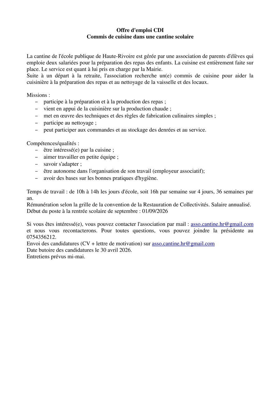 Association de la cantine scolaire